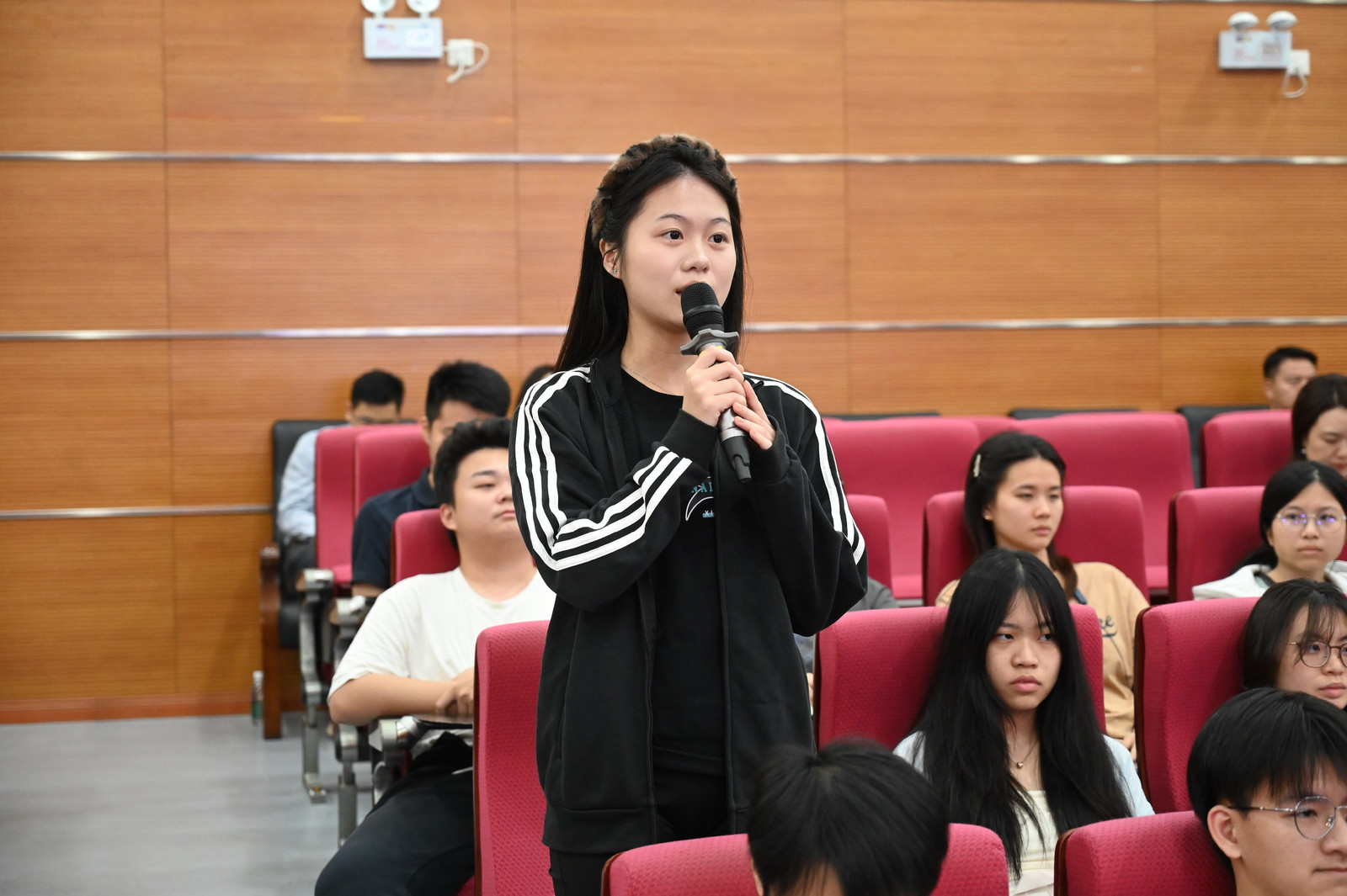 主题讲授结束后,由马克思主义学院院长孙晓晖教授主持讨论环节。各学习小组同学围绕课前独学内化、分组讨论和授课内容进行了汇报。6个班级12名学生代表结合自身所学专业,就如何深刻认识“两个大局”、将个人规划与国家战略及广东机遇相结合、在“十五五”新征程中贡献青春力量等主题,分享了小组讨论结果。