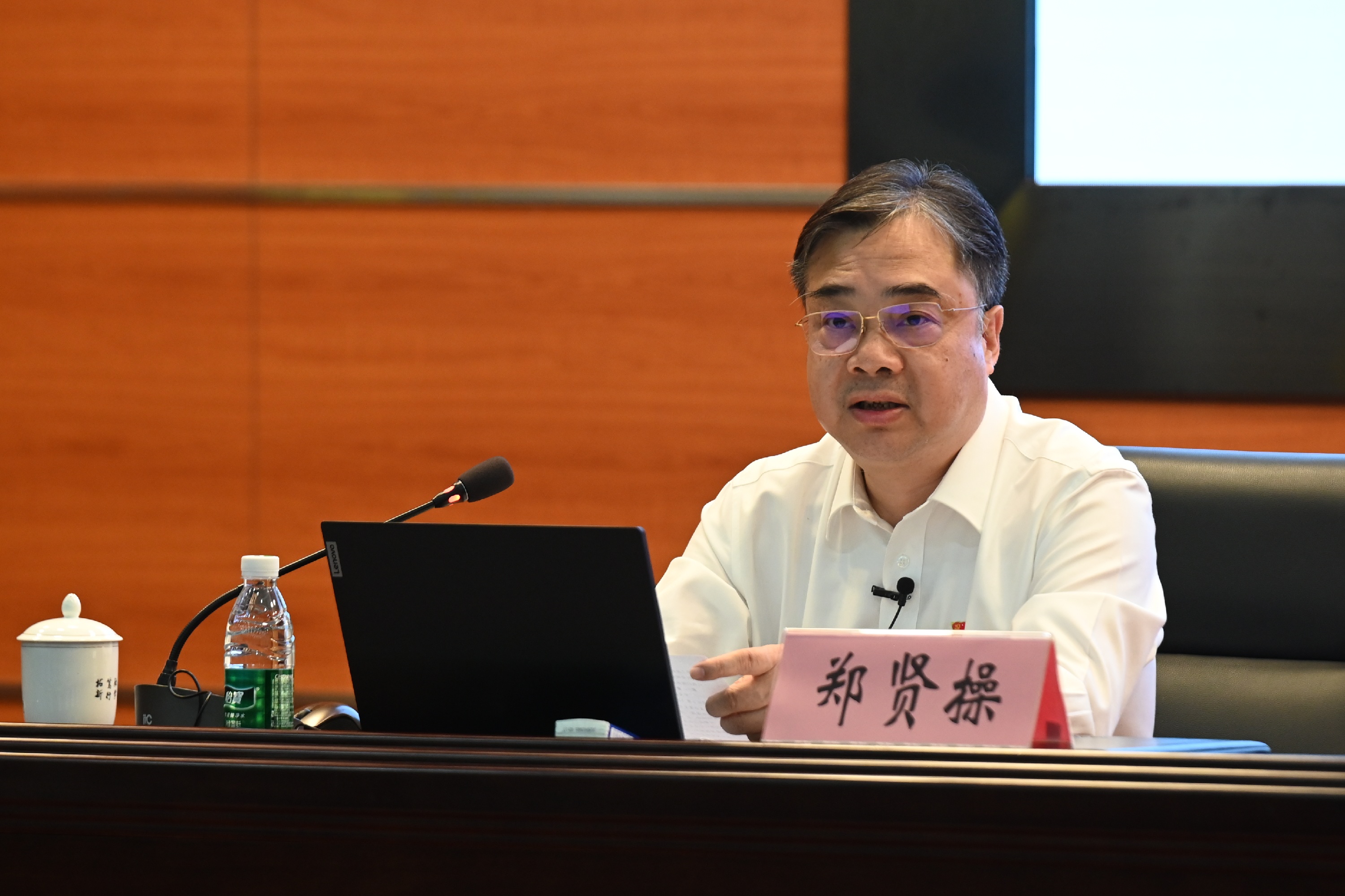 在主题讲授环节,郑贤操以“春晚武术节目《武BOT》”和“央视新闻关于美以伊战争的报道”两段视频为切入点,深入分析国际国内形势,引导同学们要胸怀“两个大局”,深入思考中华民族伟大复兴的战略全局与世界百年未有之大变局的宏大背景,深刻理解国家“十五五”时期的“战略布局”,并瞄准历史定位“主动入局”,勇担青年使命。
