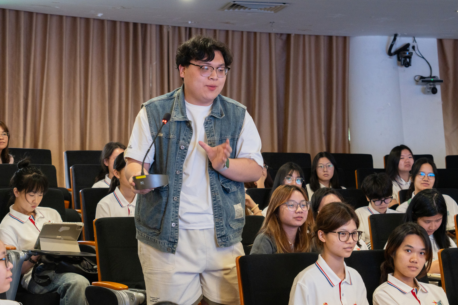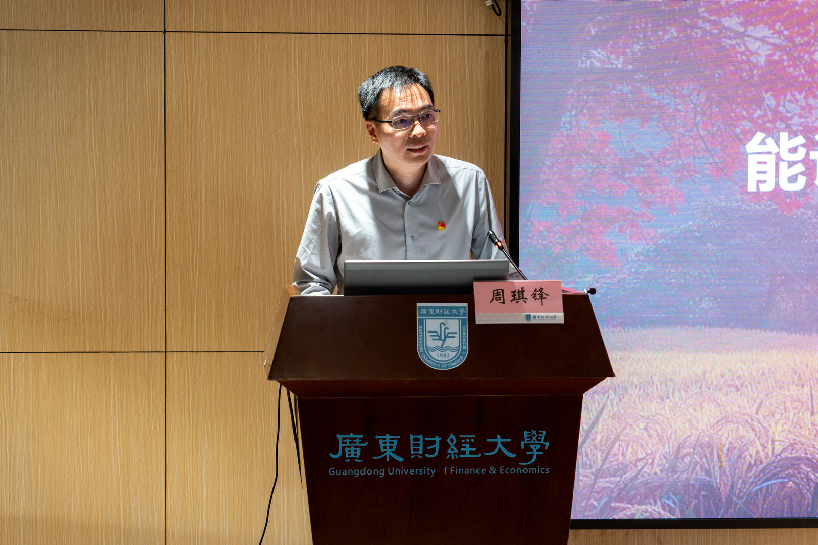 课上,我校“双百行动”驻兴宁服务队队长周琪锋分享了驻兴宁帮扶的具体实践。他结合一线工作经历,讲述校地协同推进产业赋能、人才培育、民生服务、文化传播等工作实效,展现广财力量助力乡村振兴的担当。他指出,“百千万工程”进程与青年成长同频共振,是宝贵的时代机遇,鼓励学子走进基层、躬身实践,以微小努力汇聚发展动能,让青春在服务地方中绽放光彩。
